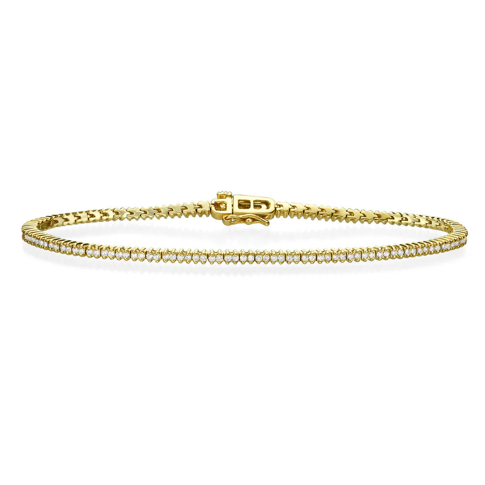 צמיד טניס אלגנטי מזהב 14K. חוליות הצמיד מעוצבות בדייקנות לפי דגם שתי שיניים.